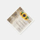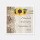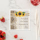 Elegant white lace, ribbon, sunflowers and wood wedding paper napkin featuring white lace on wood with two crossed satin ribbons and sunflowers. Text in brown. Note that lace, wood and sunflowers are all “printed on” and not real fabric or flowers. This elegant, sophisticated and romantic design with a rustic essence is part of a wedding set and is perfect for a country chic or western fall/autumn wedding with a neutral colour palette. It can be used for other occasions too, such as bridal showers, engagements or anniversaries receptions and parties.