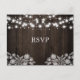 Lace And Wood String Lights Rustic Wedding RSVP Postcard. Personalise this custom design with all of your RSVP details.