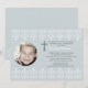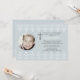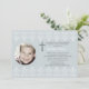 A soft blue background with intricate white transparency borders and a round photo window. Suitable for any occasion. The cross can be dragged to any spot, made larger or smaller (+-) or eliminated making this a versatile invitation.