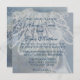 A beautiful card portraying the unity of marriage. The front of the card displays a lacy design work with shades of light blue. The back of the card displays a "silhouette of love" ( an embrace of love and unity). The back displays the bible verse " Two shall be one" (Ephesians 5:31). The script and text of the card is in navy blue and crisp white.