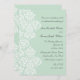 This invitation has a delicate swiss dot pattern in a whisper, light green colour. The left side has an intricate white lace, sculpted border. An excellent choice for any formal occasion. This card is set to print on "linen" paper for a more formal appearance and texture.