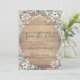 String lights, flowers and lace on wood texture save the date. Beautifully save the date that can be customised with your name. Select the "customise" button to change the font style, colour, and size.