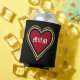 Personalise Mum tattoo can cooler with lace heart with gold and the word MOM in the centre all in classic tattoo style. You can change the text to any Mother or a name on the mug. A great can cooler to give as a mothers day gift for the Mum your life.