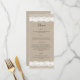 Beautifully illustrated white lace decorates this burlap coloured menu.