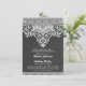 Lace Leather Rustic Black White Biker Wedding Invitation