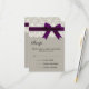 This classic wedding RSVP card features a grey background and imagery of plum coloured ribbon overlaid on lace-look trim. Perfect for a rustic or vintage inspired wedding. Contact us for custom colours at no additional cost.