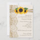 Elegant white lace, ribbon, sunflowers and burlap wedding couples shower invitation featuring white lace on beige natural burlap or hessian with two crossed satin ribbons and sunflowers. Text in brown. Note that lace, burlap and sunflowers are all “printed on” and not real fabric or flowers. This elegant, sophisticated and romantic design with a rustic essence is part of a wedding set and is perfect for a country chic or western fall/autumn wedding with a neutral colour palette.