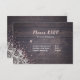 Elegant white vintage lace and sparkle blush pink glitter on dark rustic barn wood wedding RSVP cards. great for rustic wedding, barn wedding, country wedding and vintage wedding.