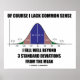 Showcase your wry bell curve attitude with a dose of psychological humour with this poster featuring the bell curve distribution (normal distribution curve, Gaussian curve) along with the following saying: "Of Course I Lack Common Sense - I Fall Well Beyond 3 Standard Deviations From The Mean". Memorable geek humour stats poster gift for anyone who lacks common sense!