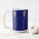 Creative lacrosse sports mug featuring lax stick and ball design pattern on field of royal blue.