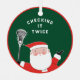 The original lacrosse "Checking It Twice" Christmas ornament holiday gift for your favourite lax player, coach or team sports fan. To personalise edit text to add name and otherwise customise.