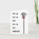 Funny lacrosse Christmas greeting cards featuring the original fa-la-la lacrosse quote and a lax stick with an ornament ball. Edit text to add your name.