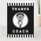 Lacrosse team coach thank-you card featuring lax stick on black background.