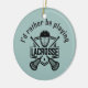 Lacrosse Design Ceramic Ornament with customizable text and background color.