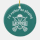 Lacrosse Design Ceramic Ornament with customizable text and hat color.
