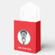 Creative lacrosse party favour gifts featuring lax stick design on red background. To personalise edit text.
