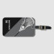 Lacrosse gear bag tag featuring lax stick on grey and black background. To personalise edit text for player or team coach.