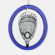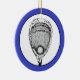 Cool lacrosse goalie keepsake ornament featuring lax goalie stick watercolor on a blue background. Add name to personalise.