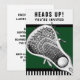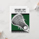 Creative lacrosse party or event invites featuring lax stick design on green background.