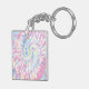 Personalised Lacrosse Plastic Key Chain with a Unique Girly Pink Tie Dye Design, custom-printed with her name, year, team name, school, or position, and jersey number.