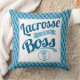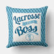 Lacrosse Like A Boss throw pillow. Blue gingham background. Available in 16" x 16" or 20" x 20" sizes, and in cotton or polyester. Use the 'size' menu on the right hand side of the screen to change pillows.