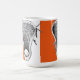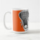 Creative lacrosse mug featuring lax sticks illustration on an orange background.