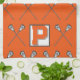 Lacrosse stick design on a field of orange. To personalise, edit text.