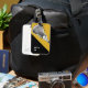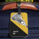 Lacrosse gear bag or luggage tag featuring gold and black lax stick design. To personalise edit text.