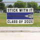 Creative lacrosse team congrats banner featuring motivational quote and lax stick. Edit text to add year.