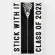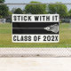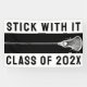 Creative lacrosse team senior night or graduation party banner featuring lax stick and motivational quote on black background. Edit text to add year.