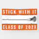 Lacrosse team banner featuring motivational line and lacrosse stick design on an orange background. Edit text to add year.