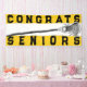 Lacrosse congrats banner featuring a lax stick on a yellow background. Edit text to customise for your lacrosse party or team event, game day, graduation party of senior night celebration.
