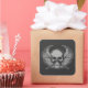Lacrosse skull. Take off on the iconic skull and cross bones design. Skull and crossed lacrosse sticks with winged background element. Design style: Grey.