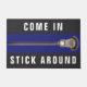 Funny lacrosse decor for players, coaches and team fans, featuring a lax stick on a blue background.