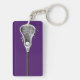 Cool lacrosse gear bag or luggage tag featuring lax stick keychain. Add text to personalise for your favourite purple team lacrosse player or lax coach.