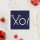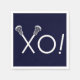 Creative lacrosse party or event napkins for team navy blue player, coach or sports fans who love game day, senior night or birthday party featuring lax sticks xoxo hugs and kisses.