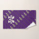 Lacrosse player towel featuring lax stick pattern on a field of purple. To personalize edit text to add lacrosse player's name and monogram initial.