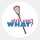 Feel the rush of scoring a goal with this sporty design. Who says girls can't play lacrosse? Girls Can't WHAT? Makes a great gift for athletes of all ages!