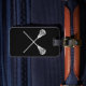 Luggage tag with a silhouette of a crossed lacrosse sticks. Great for equipment bags. Customise it with a name, address and phone number. This design is available in different colours and on other products at my store.