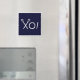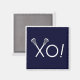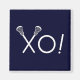 Creative lacrosse gift magnet for team player, coach or sports fans, featuring lax sticks xo! on navy blue background.