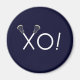 Creative lacrosse gift magnet for team player, coach or sports fans, featuring lax sticks xoxo on navy blue background.
