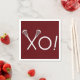 Creative lacrosse party or event napkins for team maroon player, coach or sports fans who love game day, senior night or birthday party featuring lax sticks xoxo hugs and kisses.