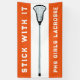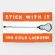 Motivational lacrosse banner featuring unique girls lax stick design on orange background. Edit text to customise for your lacrosse party or team event, game day, school senior night or team tryouts.