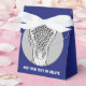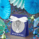 Creative lacrosse party or sports event favour box featuring lax stick design on blue background. Edit text to personalise.