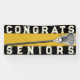 Creative lacrosse congrats banner featuring lax stick on gold background. Edit text to customise for lacrosse team party, sports event, game day poster or senior night.