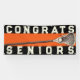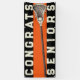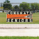 Lacrosse congrats design featuring a lax stick on team orange background. Edit text to customise for lacrosse party, sports event, game day banner, senior night or graduation.