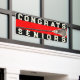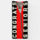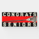 Lacrosse congrats design featuring a lax stick on red background. Edit text to customise for lacrosse party, sports event, game day banner, senior night or team tryouts.
