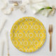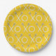 Cool lacrosse party or team event plates featuring lax stick xoxo art on yellow background.