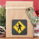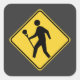 Lacrosse crossing. Lacrosse stick-carrying pedestrian on classic yellow crossing sign.