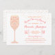 Modern lacy styled champagne or mimosa glass is decorated with bubbles, grapes, vines and leaves. The back has a cute Bubbles Pattern in peach / pink A fun yet elegant card. Original Illustration by pj_design.